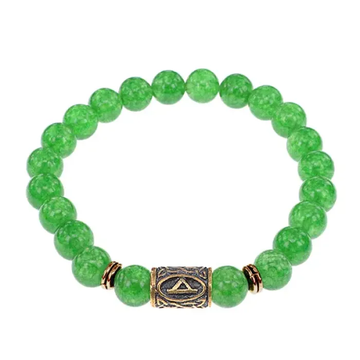 Браслет со славянской руной Даждьбог и нат.камнем Нефрит, 8мм BSRN-15-13