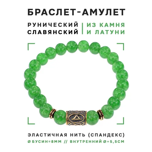 Славянский рунический браслет с натуральным нефритом и символом руны Даждьбог.