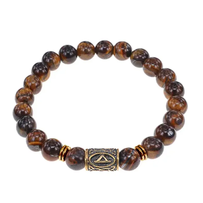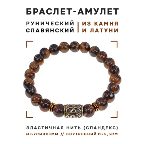 Браслет со славянской руной Даждьбог и нат.камнем Тигровый глаз, 8мм BSRN-15-19
