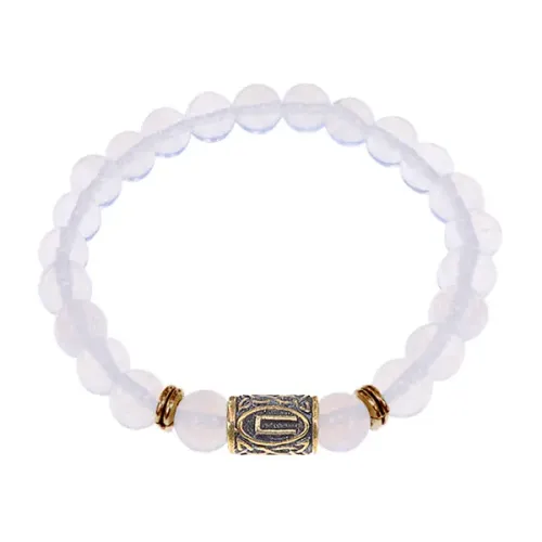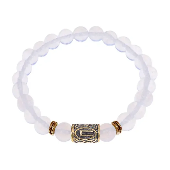 Браслет со славянской руной Перун и синт.камнем Лунный камень, 8мм BSRN-16-11
