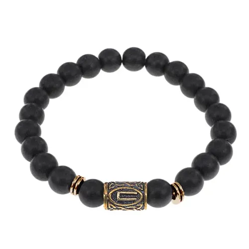 Браслет со славянской руной Перун и синт.камнем Шунгит, 8мм BSRN-16-24