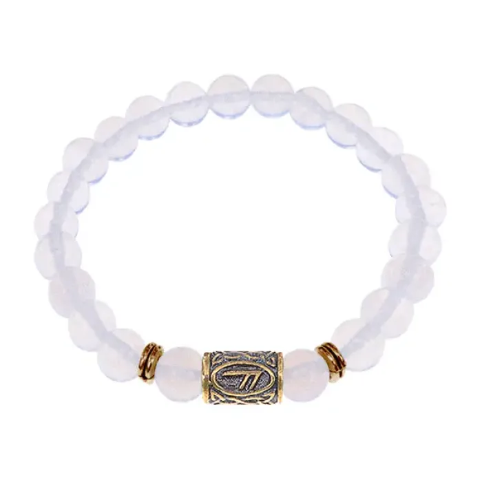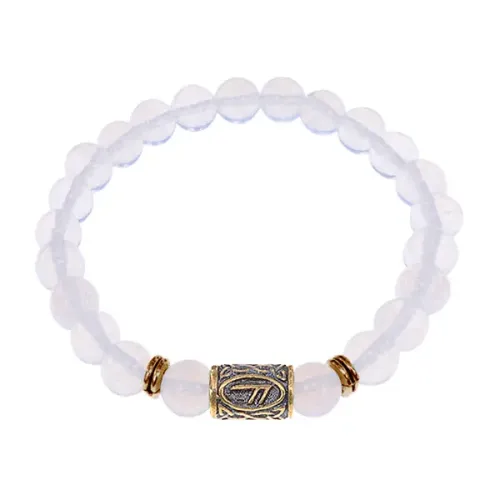 Славянский рунический стрейч-браслет с бусиной из синтетического лунного камня и символом руны Есть.
