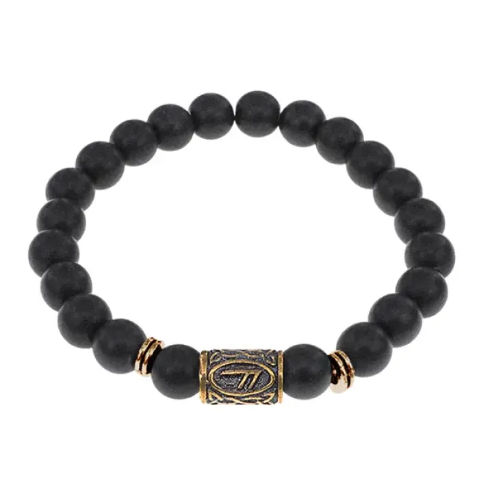 Браслет со славянской руной Есть и синт.камнем Шунгит, 8мм BSRN-17-24