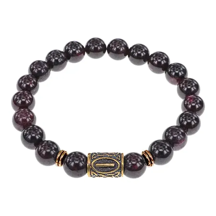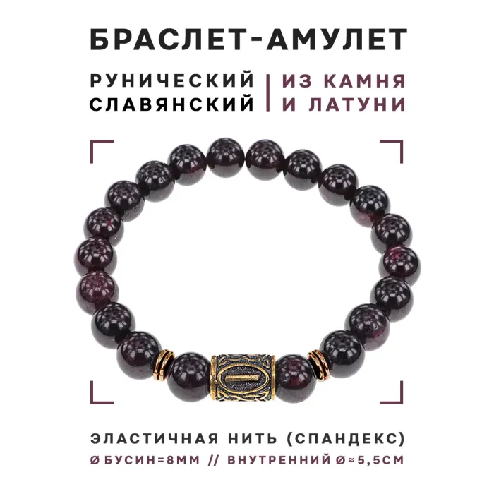 Браслет со славянской руной Исток и нат.камнем Гранат, 8мм BSRN-18-06