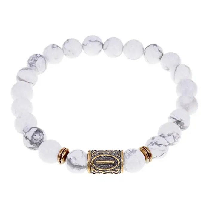 Браслет со славянской руной Исток и нат.камнем Кахолонг, 8мм BSRN-18-07