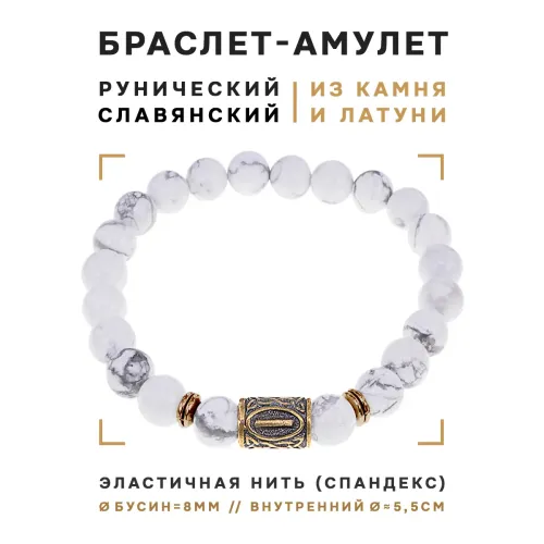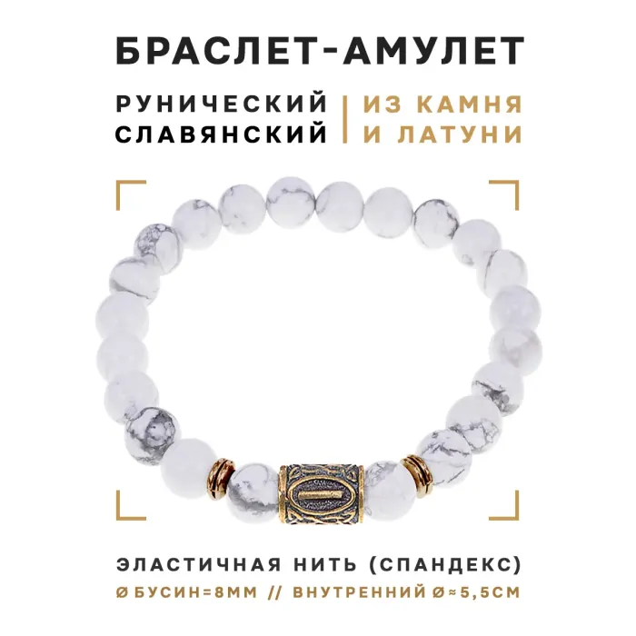 Славянский браслет с руной Исток и натуральным камнем кахолонг, диаметр бусин 8 мм.