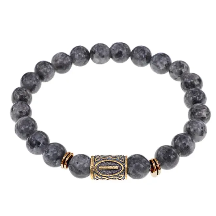 Браслет со славянской руной Исток и нат.камнем Лабрадор, 8мм BSRN-18-08