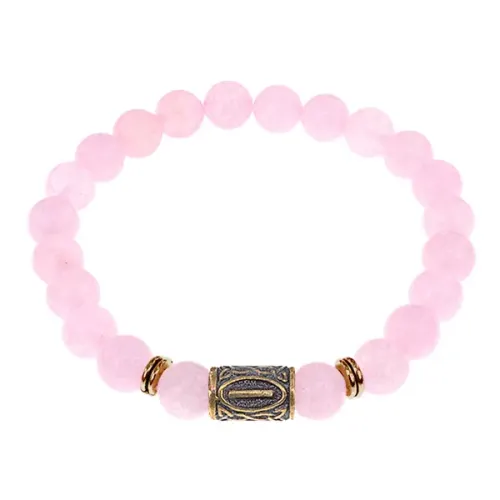 Браслет со славянской руной Исток и нат.камнем Розовый кварц, 8мм BSRN-18-15