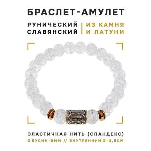 Браслет со славянской руной Исток и синт.камнем Сахарный кварц, 8мм BSRN-18-16