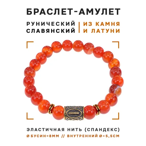 Браслет со славянской руной Исток и нат.камнем Сердолик, 8мм BSRN-18-17