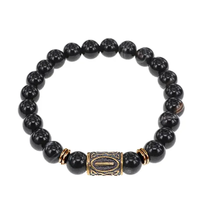 Браслет со славянской руной Исток и нат.камнем Черный агат, 8мм BSRN-18-23