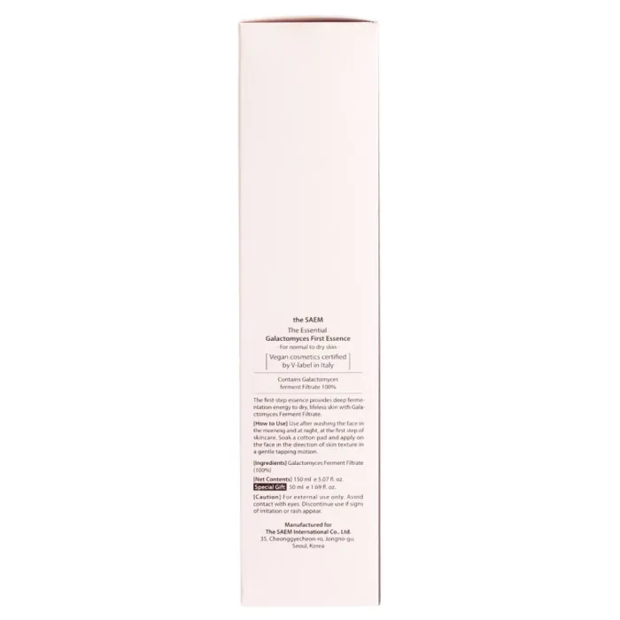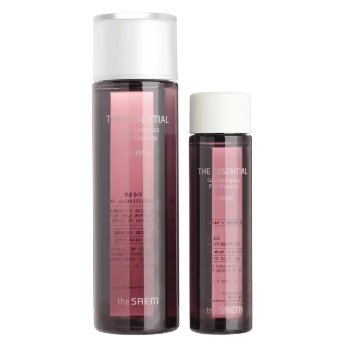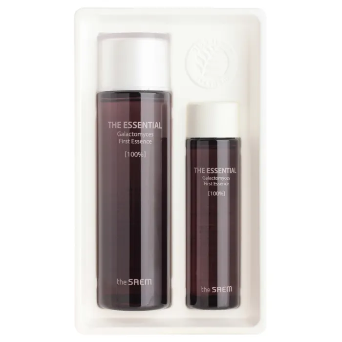 Набор эссенций The Essential Galactomyces First Essence Set от The Saem включает две эссенции объёмом 150 мл и 50 мл, предназначенные для придания коже здорового и сияющего вида. Основой средства является дрожжевой фильтрат галактомисис, который выполняет функции праймера для макияжа, разглаживая и увлажняя кожу. Лёгкая текстура эссенции быстро впитывается в глубокие слои дермы, создавая визуальный эффект разглаживания морщин сразу после применения.