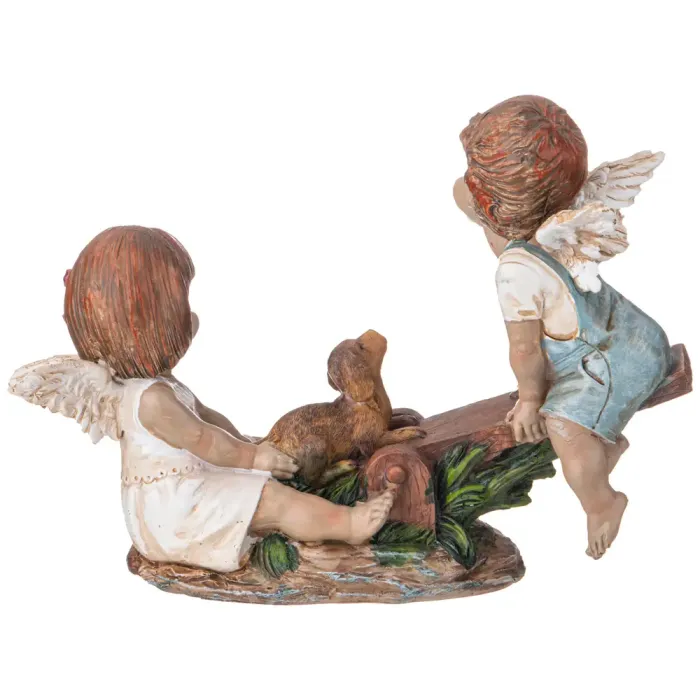 Фигурка изготовлена из полирезина — материала, сочетающего каменную крошку и смолу с красящими пигментами. Полирезин отличается экологичностью и устойчивостью к влаге, что делает его идеальным для длительного использования. Каждое изделие коллекции Amore создается путем литья и раскрашивается вручную, что придает ему уникальность.