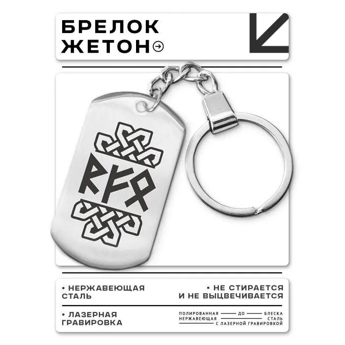 Брелок-амулет из нержавеющей стали с лазерной гравировкой рун.