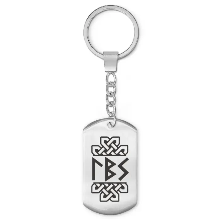 Брелок из нержавеющей стали с односторонней лазерной гравировкой рун.