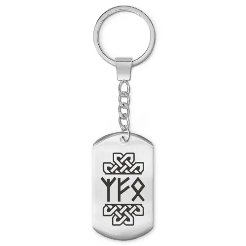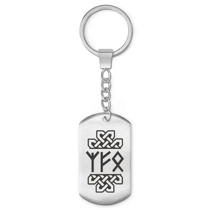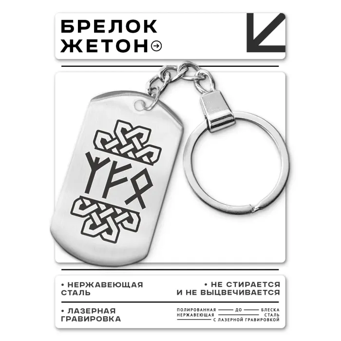 Брелок-амулет из нержавеющей стали с односторонней лазерной гравировкой рун.