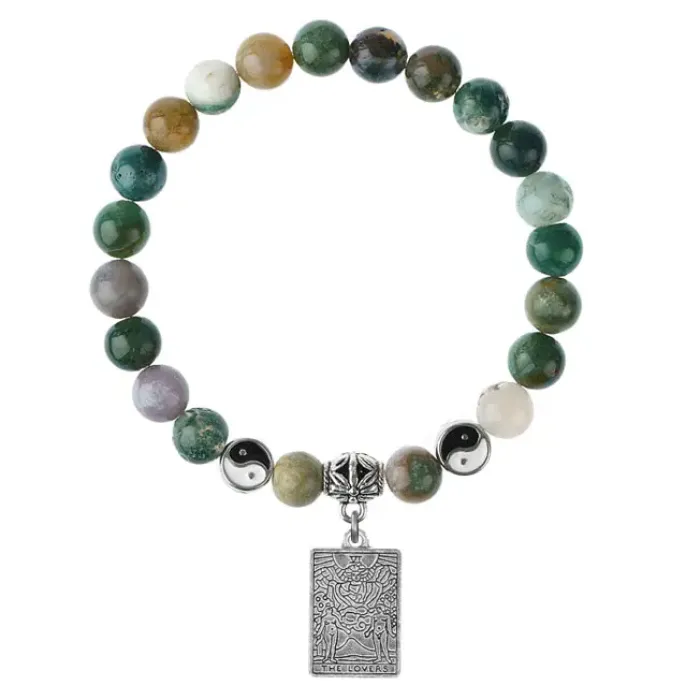 Браслет из натуральной яшмы с подвеской-талисманом в виде аркана Таро «Любовники».
