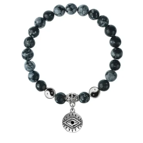 Браслет Глаз (от сглаза и порчи), Снежный обсидиан 8мм