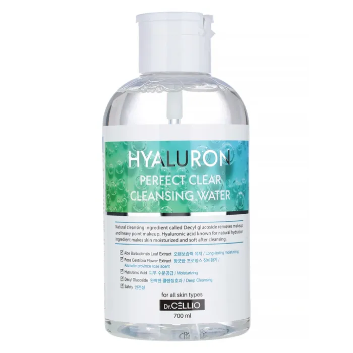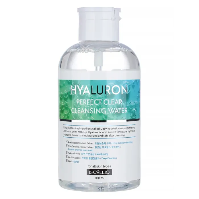 Очищающая вода для лица Hyaluron Perfect Clear Cleansing Water от Dr. Cellio предназначена для мягкого и эффективного удаления макияжа и загрязнений с кожи. Формула средства обогащена гиалуроновой кислотой, которая помогает сохранить влагу в коже, предотвращая её пересушивание и раздражение. Этот продукт подходит для ежедневного использования и не требует дополнительных очищающих средств.