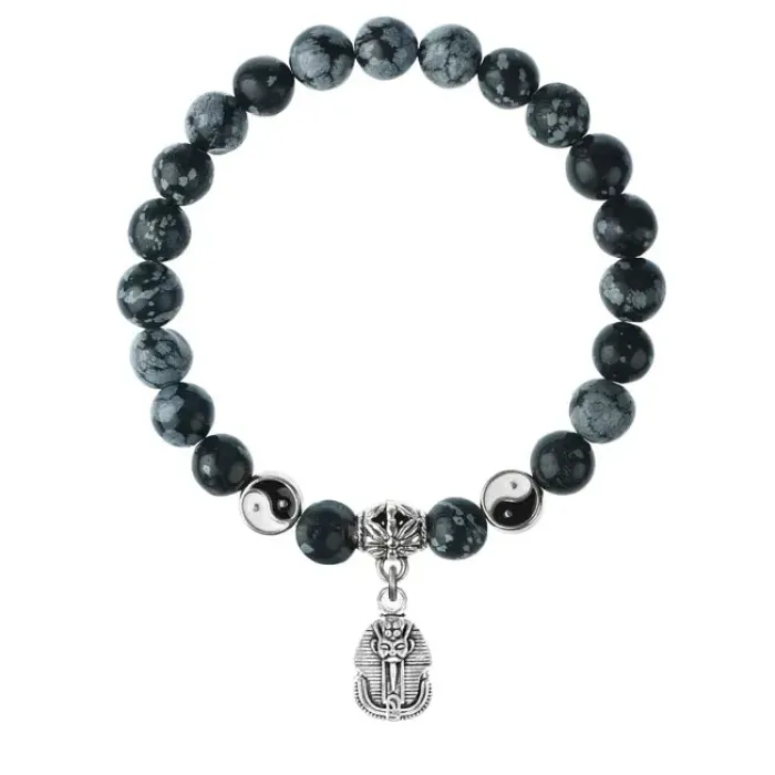 Браслет Фараон (благополучие, процветание), Снежный обсидиан 8мм
