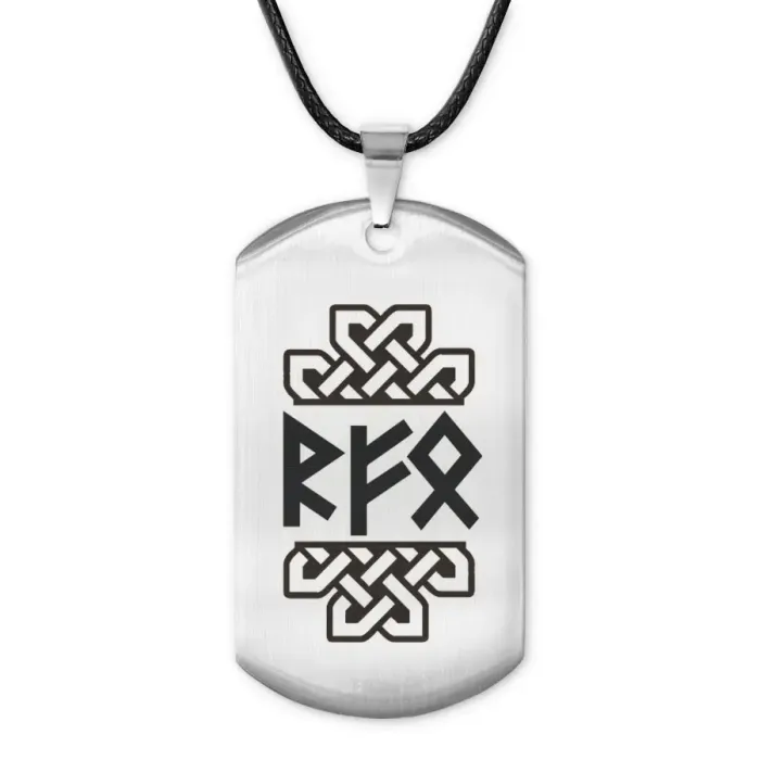 Амулет-жетон из полированной нержавеющей стали с лазерной гравировкой изображения на одной стороне.