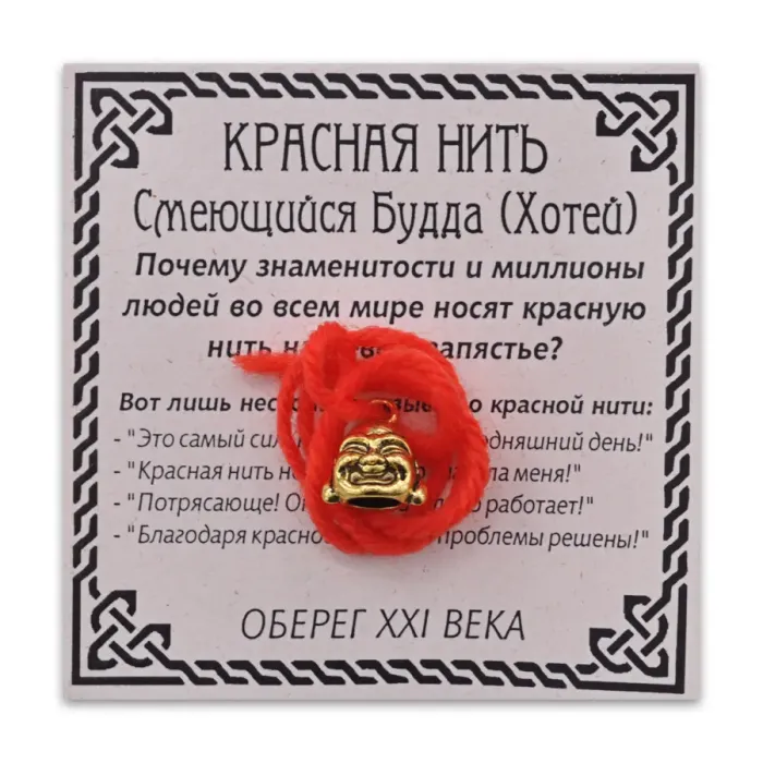 Красная нить Хотей (смеющийся Будда), цвет золот. KN031-1
