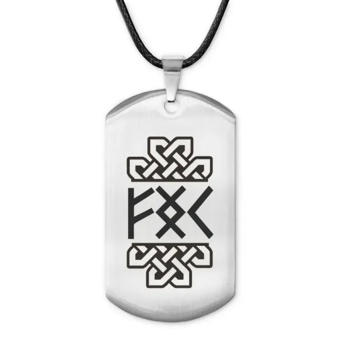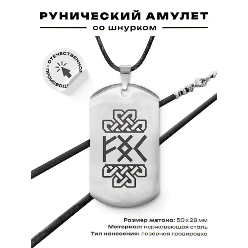 Амулет-жетон из нержавеющей стали с лазерной гравировкой рун.