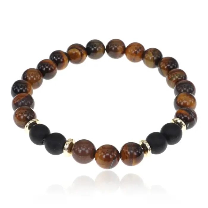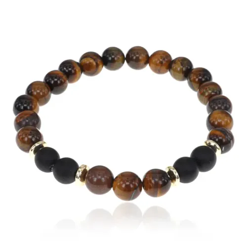 Стрейч-браслет с бусинами из натурального тигрового глаза и синтетического шунгита диаметром 8 мм.