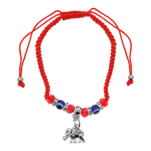 Плетёный браслет-сувенир красного цвета с декоративным коннектором в виде слона.