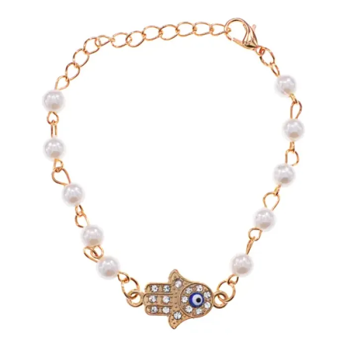 Браслет от сглаза Хамса с искусственным жемчугом, 21см BS707-02