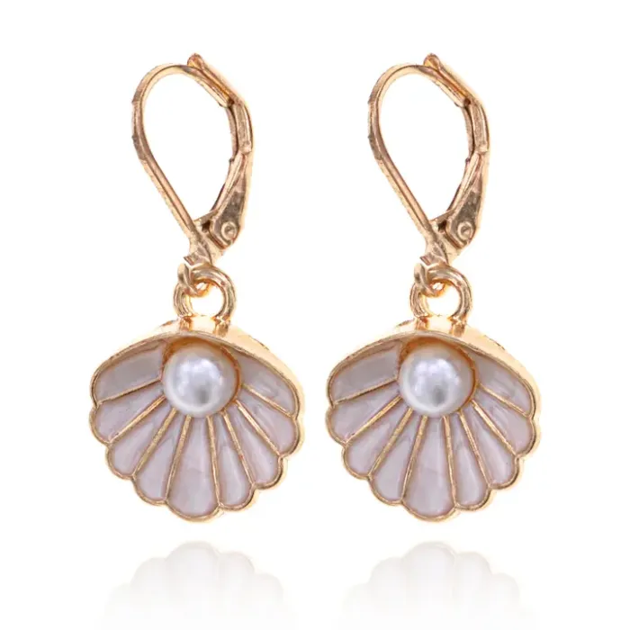 Серьги Ракушка с искусственным жемчугом, 3х1,5х1см SE257