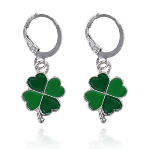 Серьги-конго для ношения. Изготовлены из бижутерного сплава с серебристым покрытием и эмалевым декором в форме клевера.
