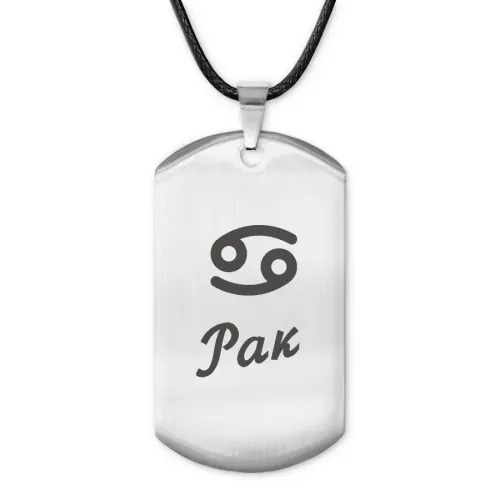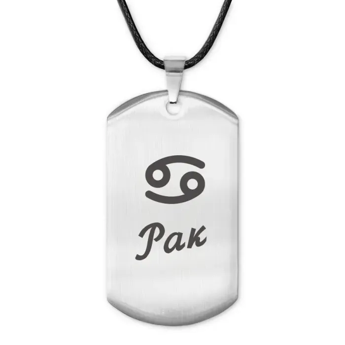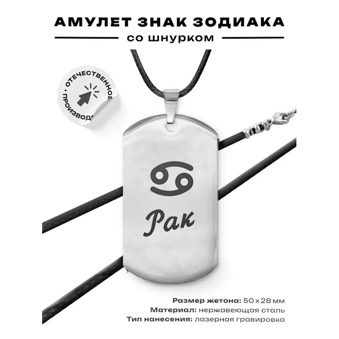 Амулет-жетон для родившихся под знаком Рака, выполненный из нержавеющей стали с лазерной гравировкой.