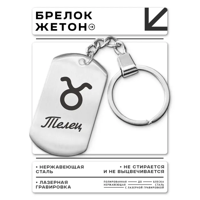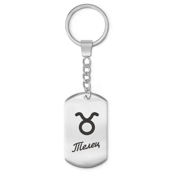 Брелок-амулет из нержавеющей стали с лазерной гравировкой знака зодиака Телец.