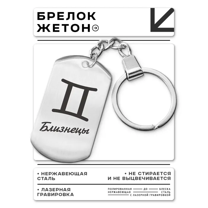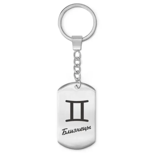 Брелок-амулет из нержавеющей стали с лазерной гравировкой знака зодиака Близнецы.