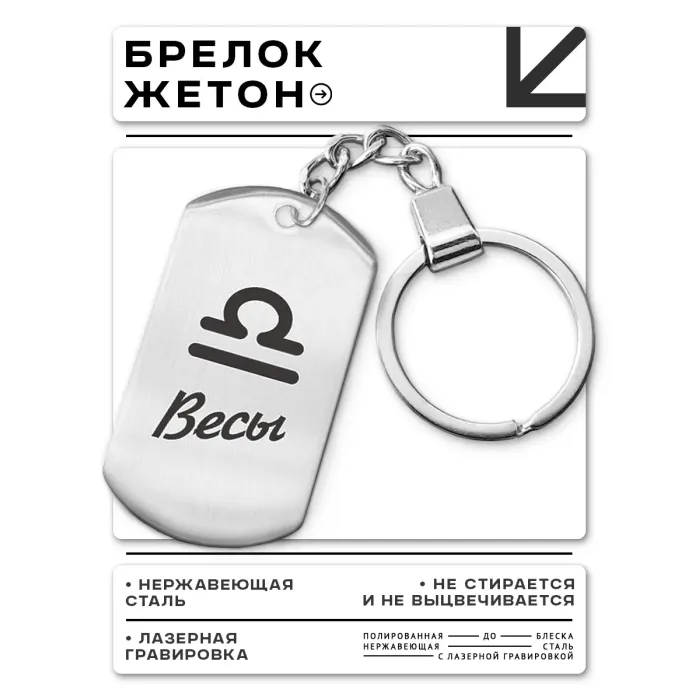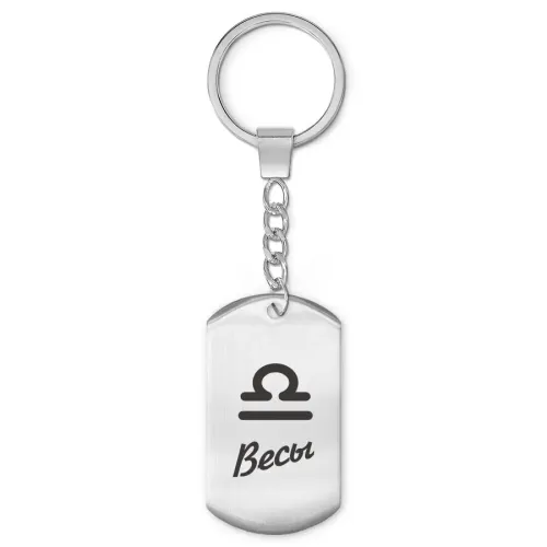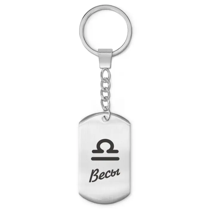 Брелок-амулет для ключей, выполненный из нержавеющей стали с лазерной гравировкой знака Зодиака Весы.