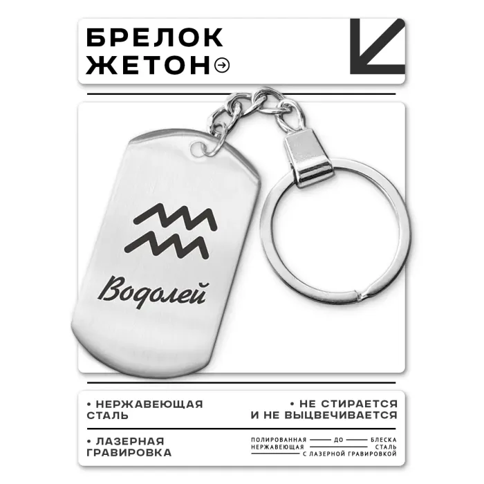 Брелок-амулет для ключей из нержавеющей стали с лазерной гравировкой знака Зодиака Водолей.