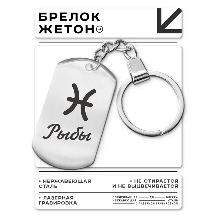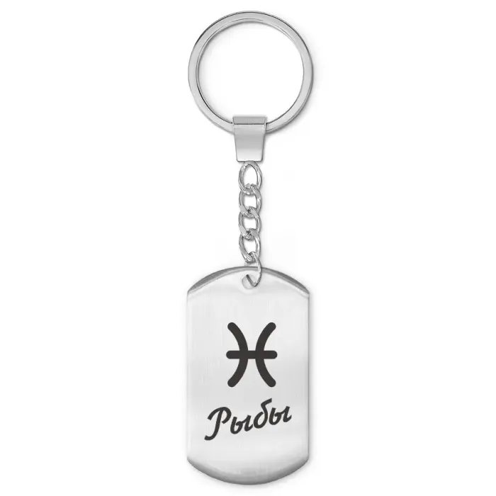Брелок-амулет из нержавеющей стали с лазерной гравировкой знака зодиака Рыбы.