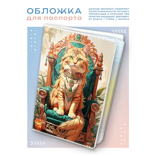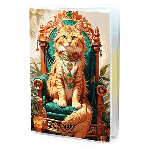 Обложка для паспорта из прозрачного ПВХ пластика с полиграфической вставкой с изображением тропического кота.