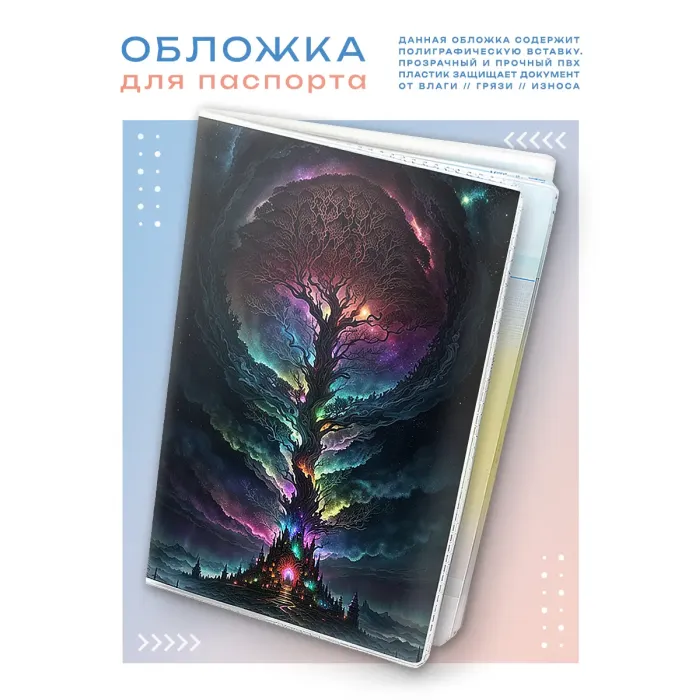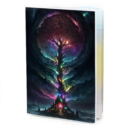 Обложка для паспорта из прозрачного ПВХ пластика с полиграфической вставкой дизайна «Космическое дерево жизни».