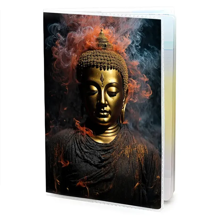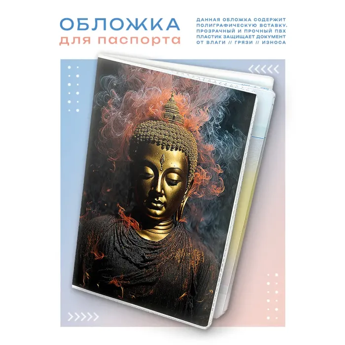 Обложка для паспорта из ПВХ пластика с полиграфической вставкой, изображающей Будду.