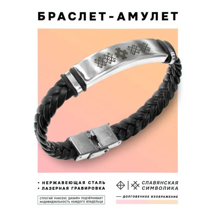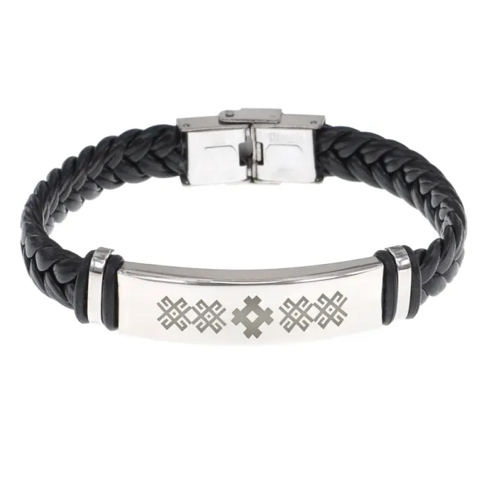 Кожаный браслет с гравировкой символа Звезда Креста. Изделие выполнено в плетёной технике.