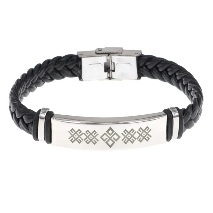 Кожаный браслет с гравировкой славянского символа Даждьбог.