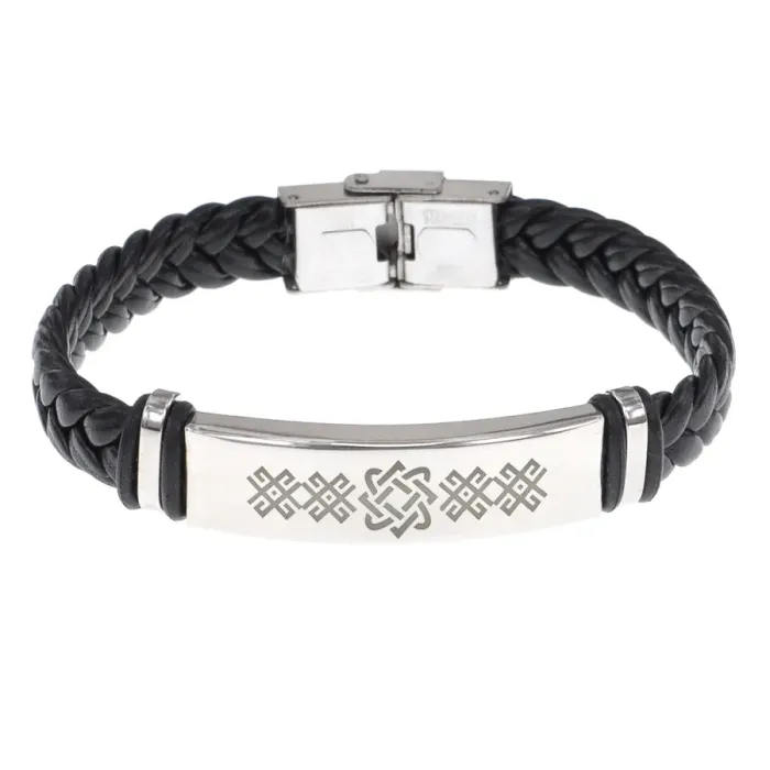 Кожаный браслет с гравировкой славянского символа Звезда Лады-Богородицы.
