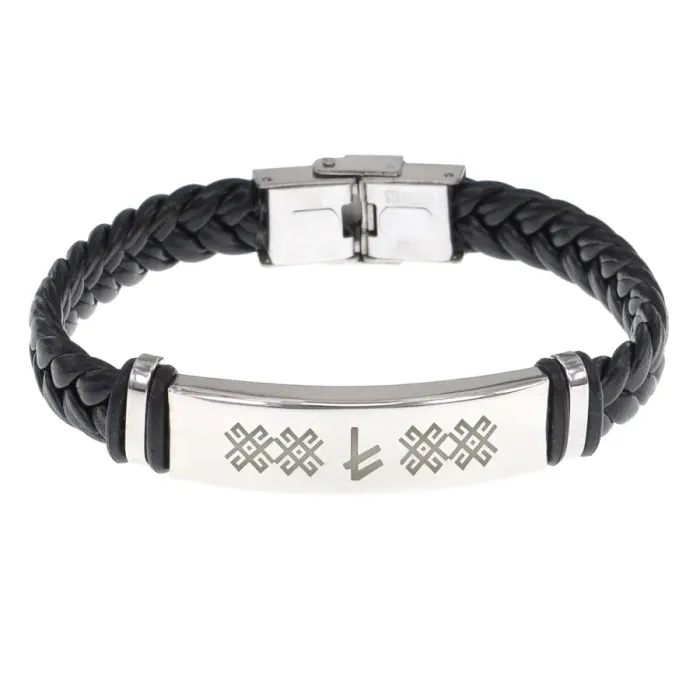 Кожаный браслет с гравировкой Руна Берегиня BSKR1-146