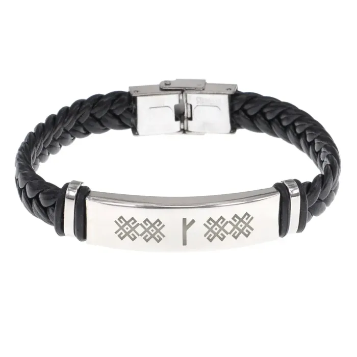 Кожаный браслет с гравировкой славянской руны Крада.