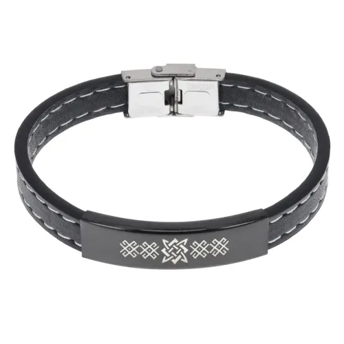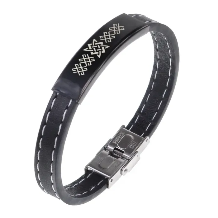Кожаный браслет с гравировкой славянского символа Звезда Руси.