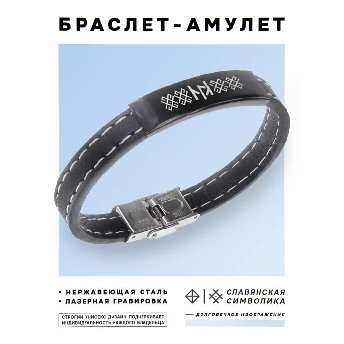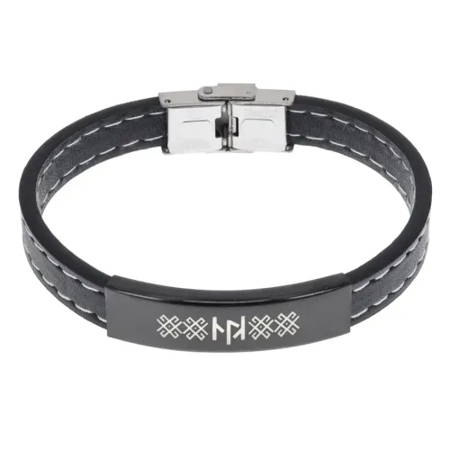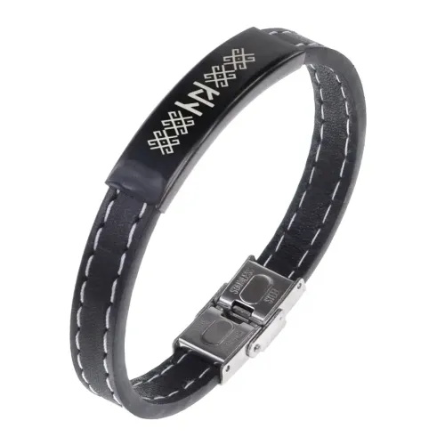 Кожаный браслет с гравировкой рунической формулы «Семейное счастье».