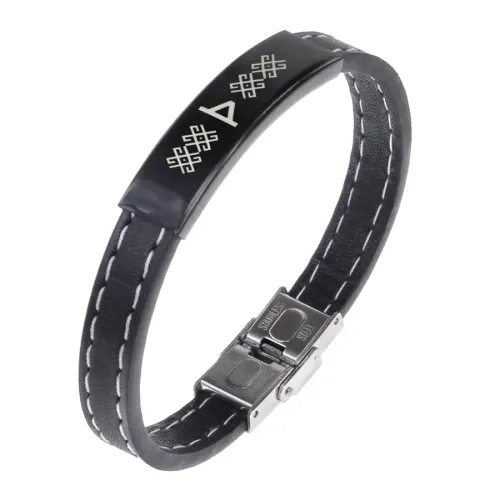Кожаный браслет с гравировкой славянской руны Даждьбог.