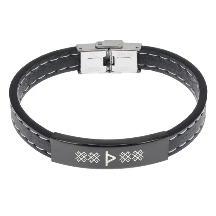 Кожаный браслет с гравировкой Руна Даждьбог BSKR2-141